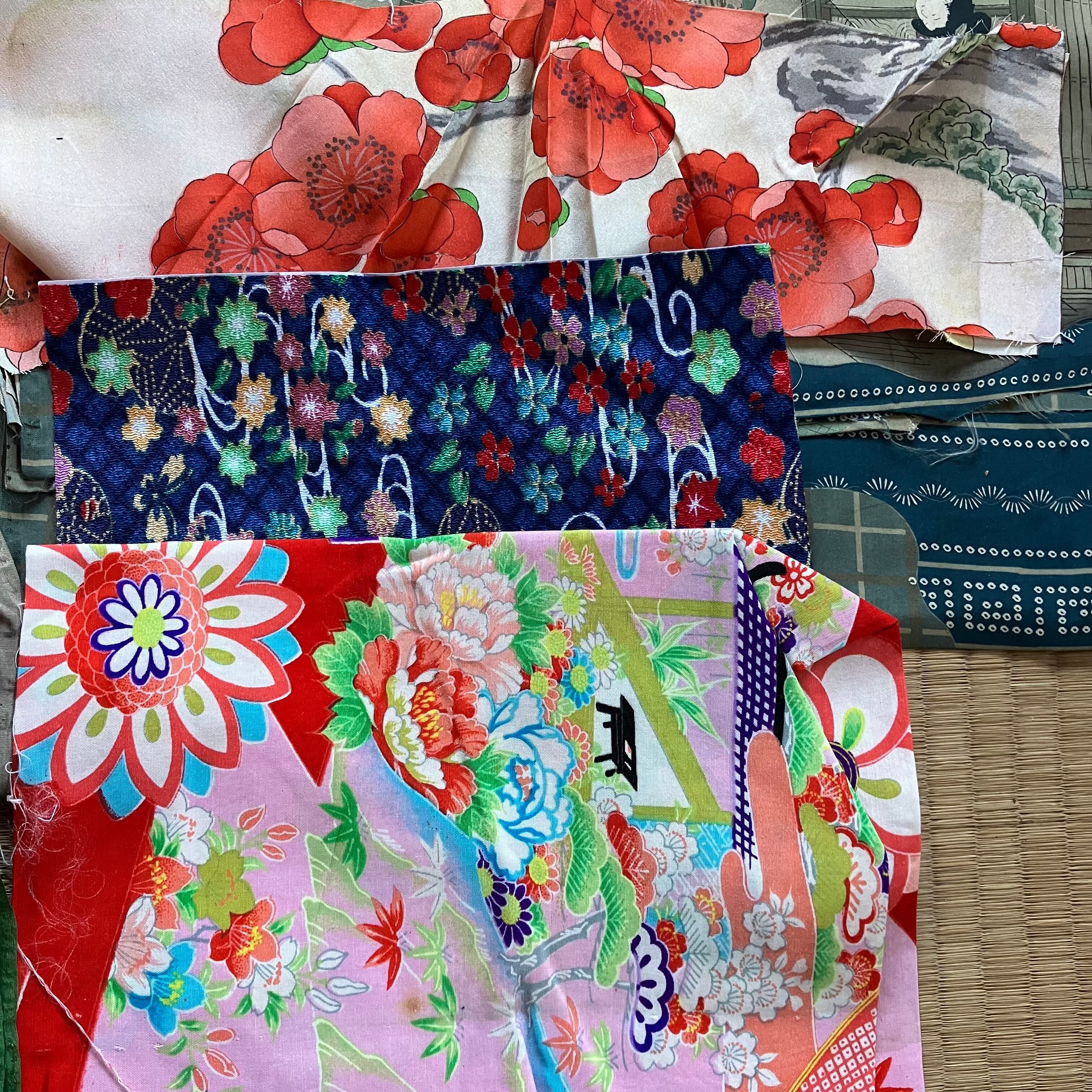 和装 着物 ほどき リメイク ハンドメイド はぎれ まとめて 江戸紅型 羽裏 レトロ 手作り 絵羽織