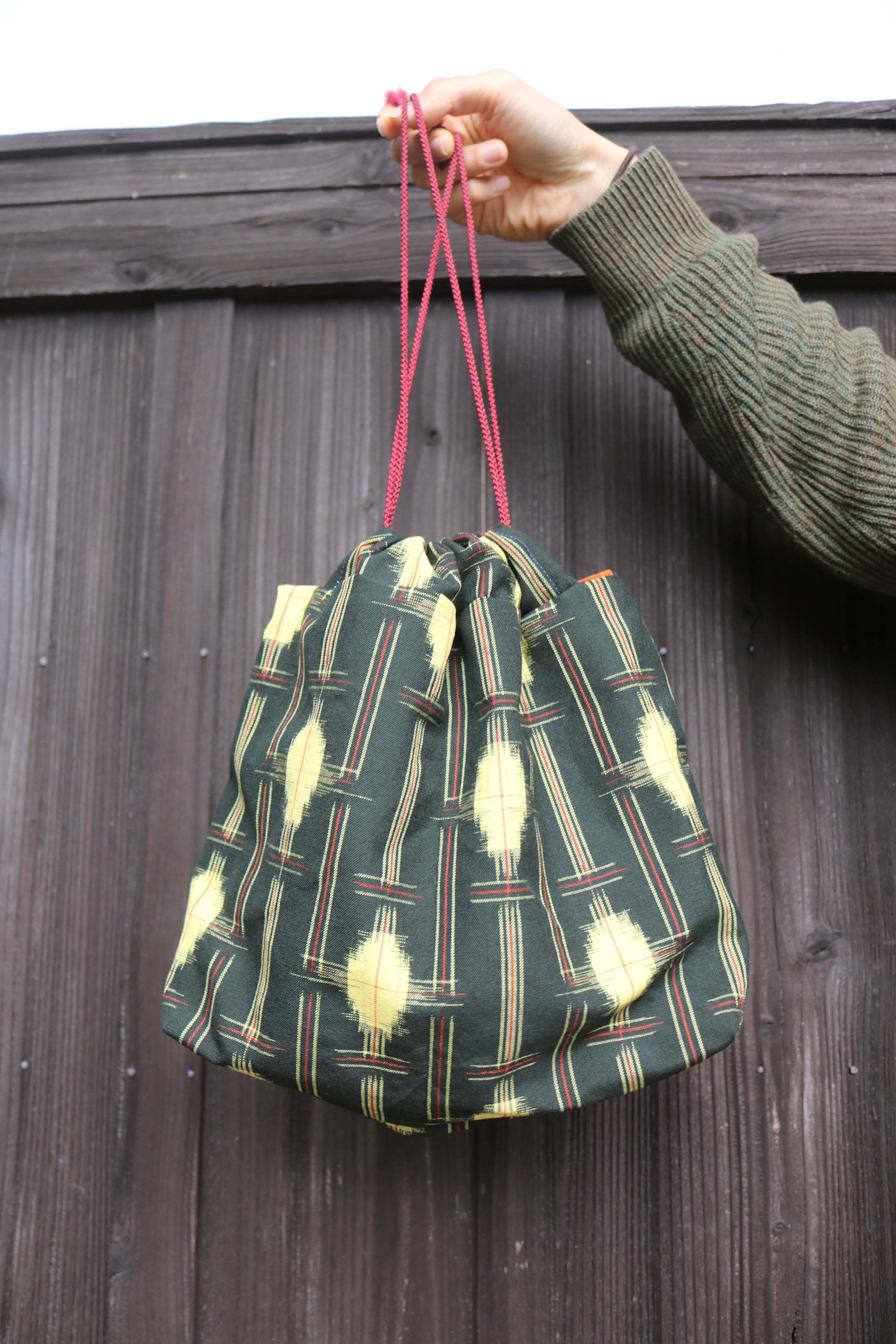 巾着袋 着物バッグ 高級別織 あぜくら絣 一点物 ユニセックス 日本製